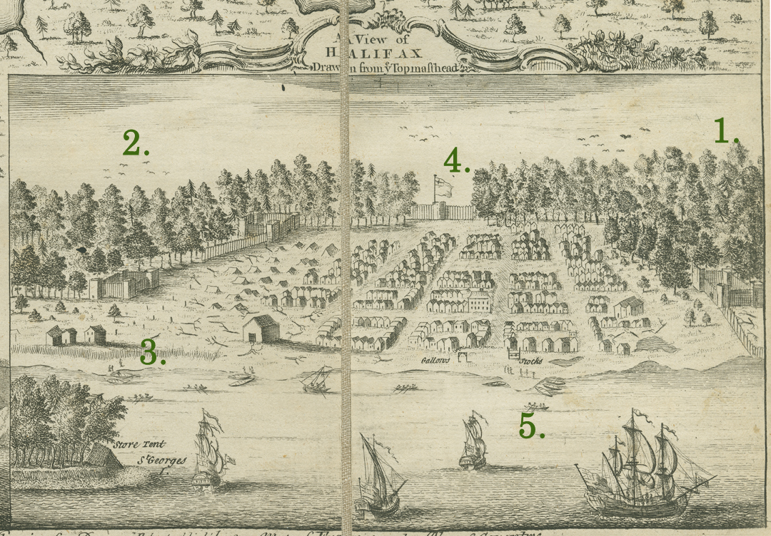 I’ve also stumbled upon an aerial diagram of Halifax from 1777— the cleared area seems consistent with the Chart of Halifax Harbour from the previous post: