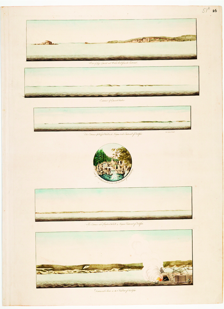 These etchings are images of the coastline around Halifax, drawn from the decks of ships passing by.