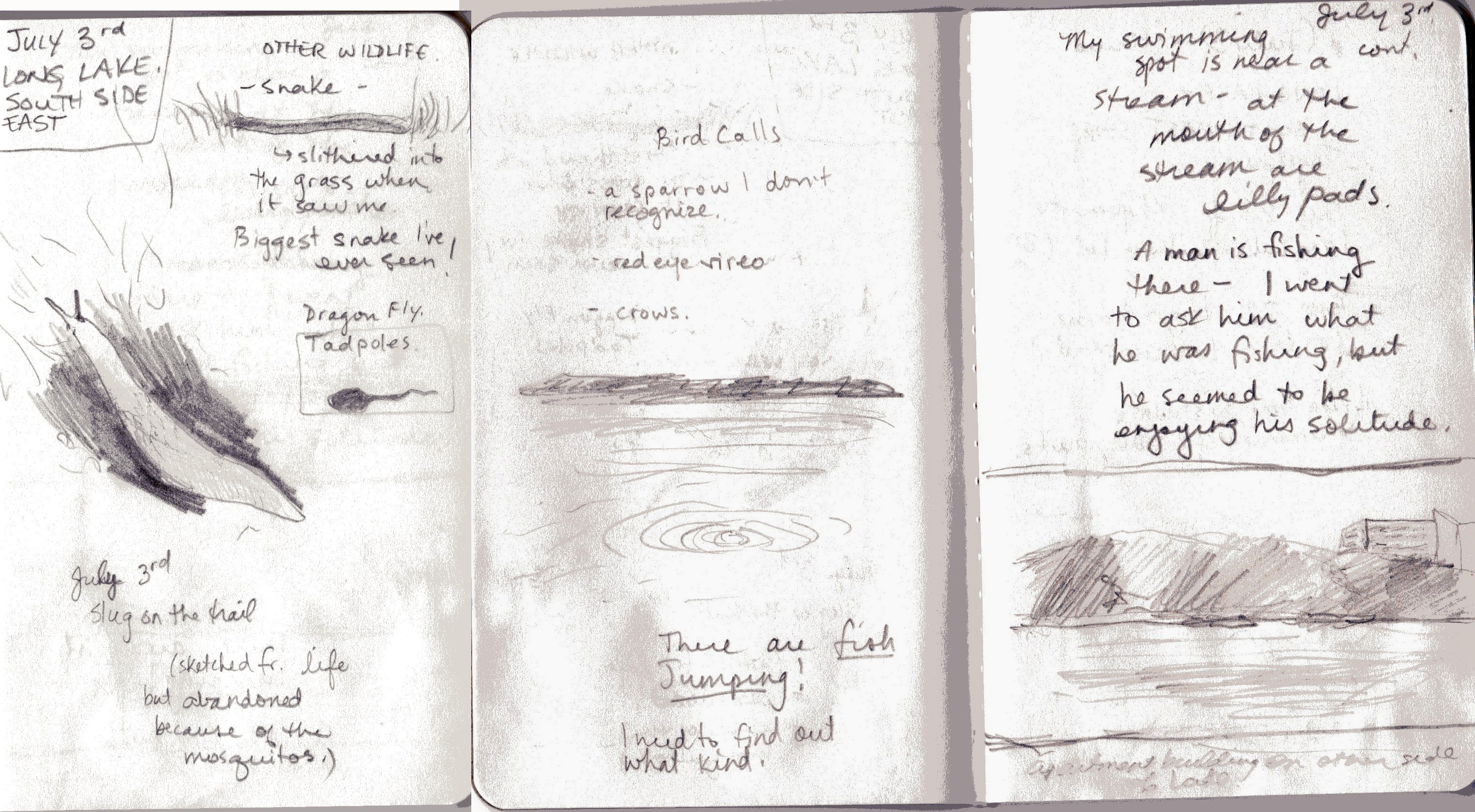 I was visiting Long Lake the other day with Woods and Lakes Society, and I was happy to see fish jumping in the water; I even made a remark about it in my notepad: